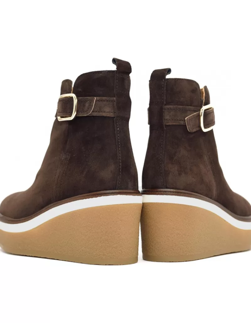 Botin Para Mujer Alpe Kiara, Fabricado En Piel (Baby Silk) De Color Cafe Sin Tacon, Suela Antideslizante Y Puntera Redonda, Con Cierre Mediante Cremallera Y Cana Baja.