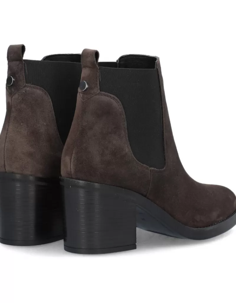 Ankle Boots Para Woman Alpe Leyna, Fabricado En Piel (Baby Silk Gliter) De Color Iman Con Tacon De 7 Cm, Suela Antideslizante Y Puntera Rounded, Sin Cierre Y Cana Low.