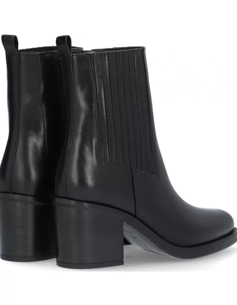 Ankle Boots Para Woman Alpe Leyna, Fabricado En Piel (Becerrro) De Color Black Con Tacon De 7 Cm, Suela Antideslizante Y Puntera Rounded, Con Cierre Mediante Cremallera Y Cana Low.