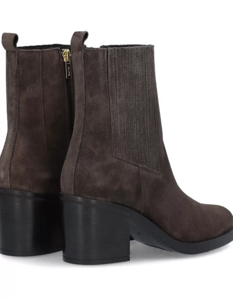 Ankle Boots Para Woman Alpe Leyna, Fabricado En Piel (Baby Silk Gliter) De Color Iman Con Tacon De 7 Cm, Suela Antideslizante Y Puntera Rounded, Con Cierre Mediante Cremallera Y Cana Low.