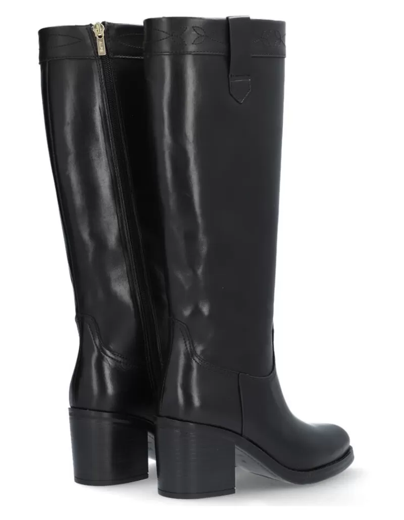 Boots Para Woman Alpe Leyna, Fabricado En Piel (Becerro) De Color Black Con Tacon De 7 Cm, Suela Antideslizante Y Puntera Rounded, Con Cierre Mediante Cremallera Y Cana Long.