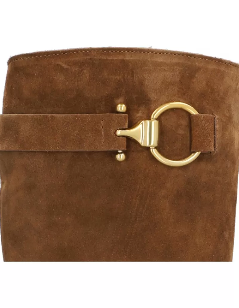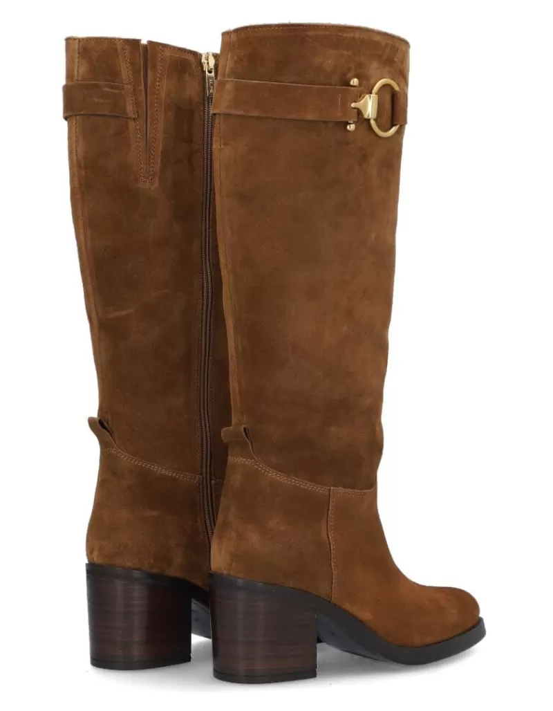 Boots Para Woman Alpe Leyna, Fabricado En Piel (Baby Silk Gliter) De Color Cuero Con Tacon De 7 Cm, Suela Antideslizante Y Puntera Rounded, Con Cierre Mediante Cremallera Y Cana Long.