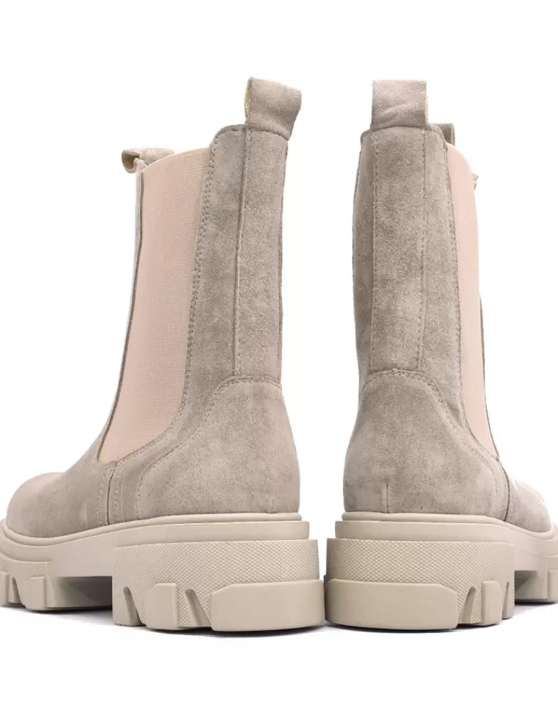 Botin Para Mujer Alpe Liverpool, Fabricado En Piel (Baby Silk) De Color Polar Con Tacon De 5 Cm, Suela Antideslizante Y Puntera Redonda, Sin Cierre Y Cana Media.