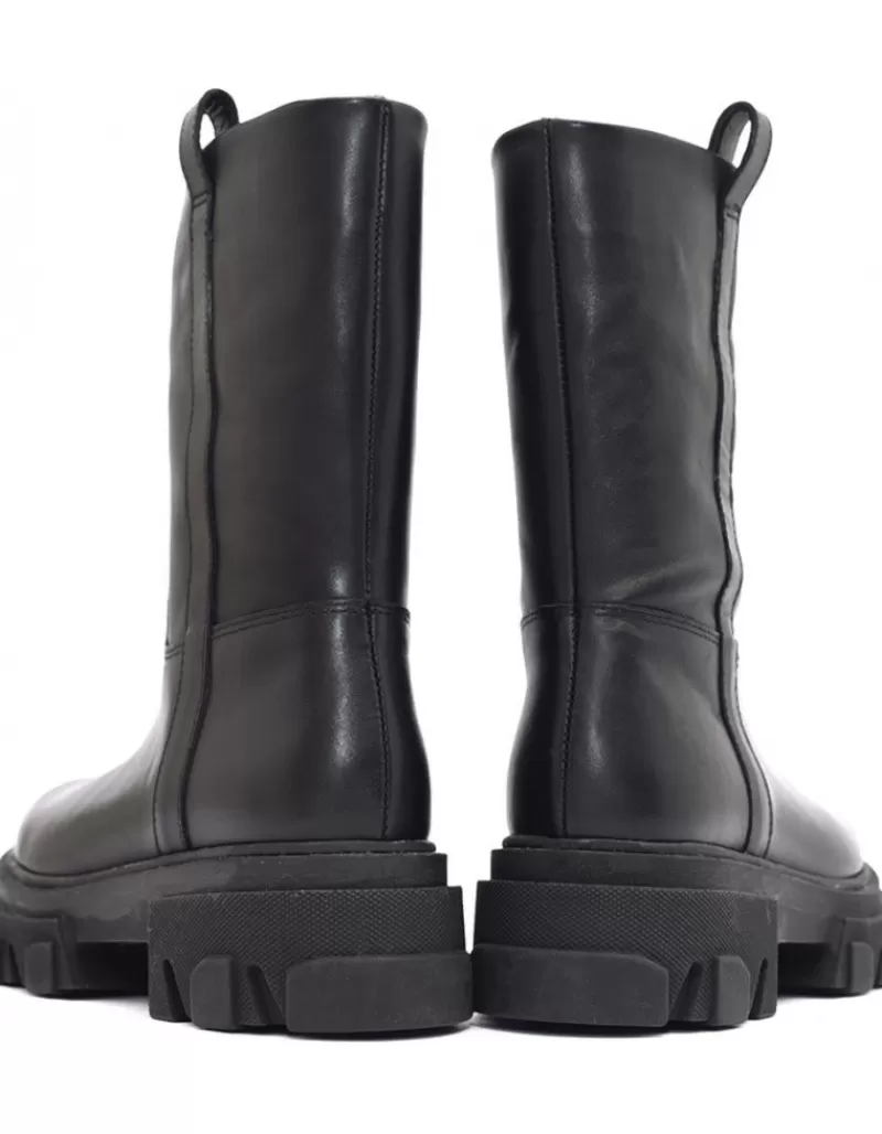 Bota Para Mujer Alpe Liverpool, Fabricada En Piel (Tripoli) De Color Negro Con Tacon De 5 Cm, Suela Antideslizante Y Puntera Redonda, Sin Cierre Y Cana Media.