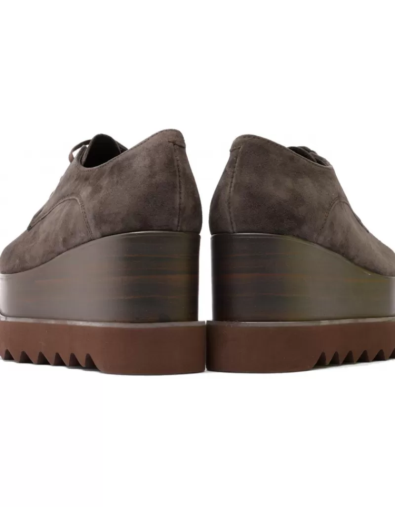 Zapato Para Mujer Alpe London, Fabricado En Piel (Baby Silk) De Color Antracita Sin Tacon, Suela Antideslizante Y Puntera Redonda, Con Cierre Mediante Cordon.