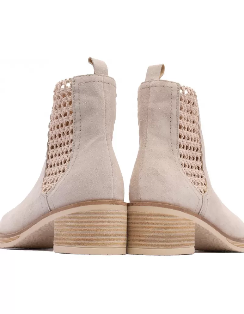Botin Para Mujer Alpe Madame, Fabricado En Piel (Baby Silk) De Color Artico Con Tacon De 5 Cm, Suela Antideslizante Y Puntera Redonda, Sin Cierre Y Cana Baja.