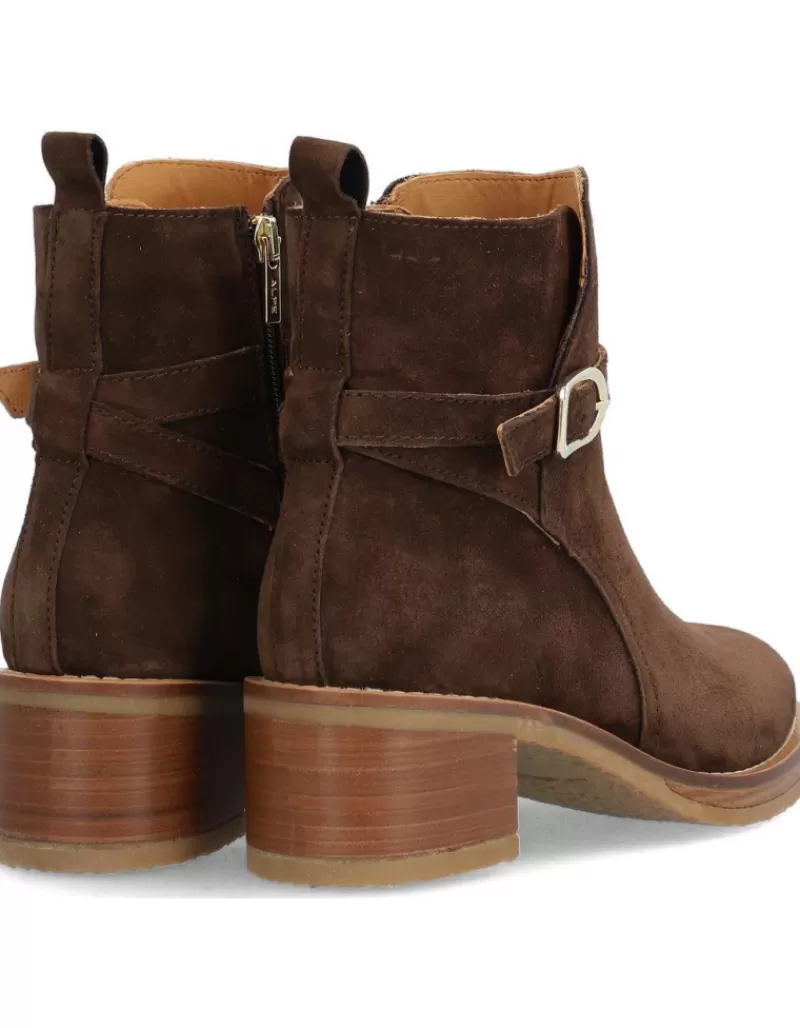 Botin Para Mujer Alpe Madame, Fabricado En Piel (Baby Silk) De Color Arabica Con Tacon De 5 Cm, Suela Antideslizante Y Puntera Redonda, Con Cierre Mediante Cremallera Y Cana Baja.