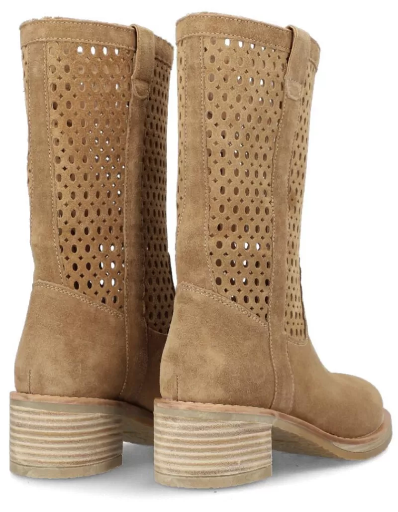 Boots Para Woman Alpe Madame, Fabricado En Piel (Baby Silk Gliter) De Color Cuero Con Tacon De 5 Cm, Suela Antideslizante Y Puntera Rounded, Sin Cierre Y Cana Medium.