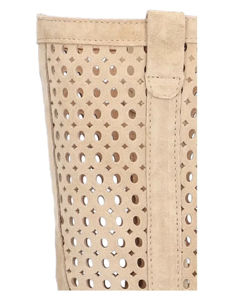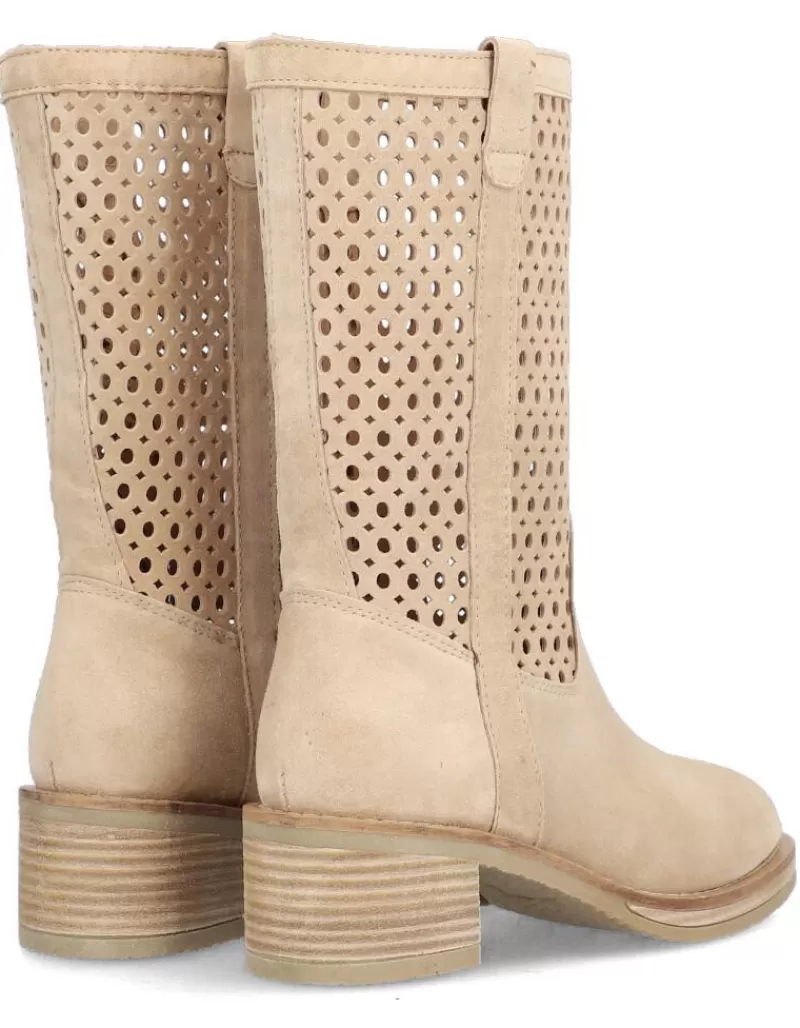 Boots Para Woman Alpe Madame, Fabricado En Piel (Baby Silk Gliter) De Color Sand Con Tacon De 5 Cm, Suela Antideslizante Y Puntera Rounded, Sin Cierre Y Cana Medium.