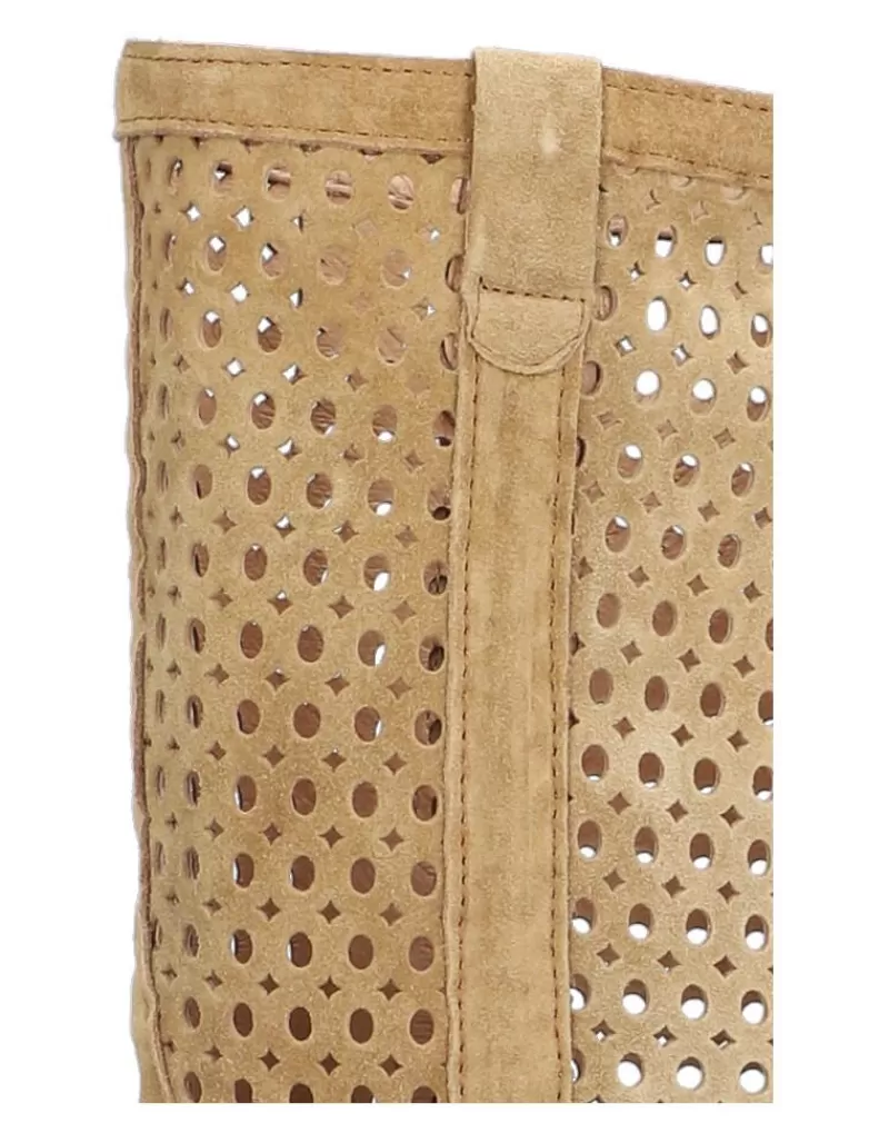 Boots Para Woman Alpe Madame, Fabricado En Piel (Baby Silk Gliter) De Color Alce Con Tacon De 5 Cm, Suela Antideslizante Y Puntera Rounded, Sin Cierre Y Cana Medium.