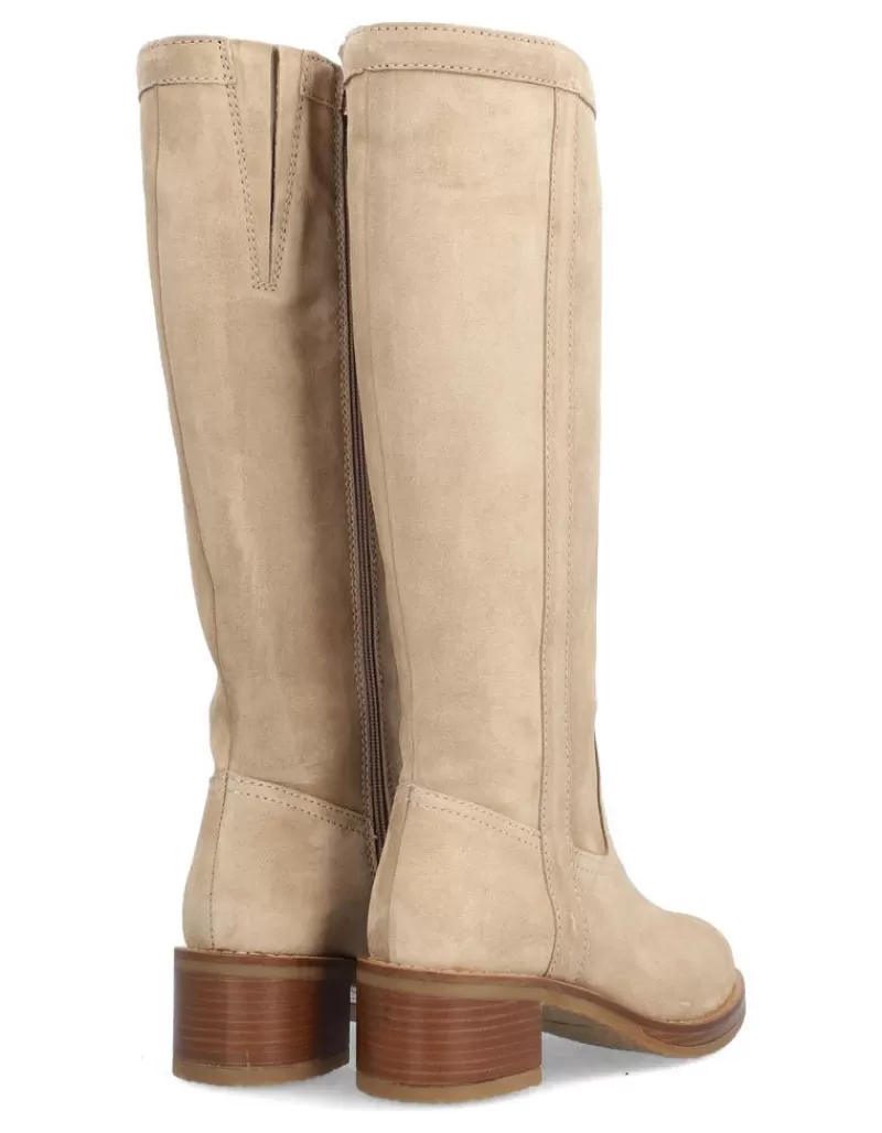 Bota Para Mujer Alpe Madame, Fabricada En Piel (Baby Silk) De Color Noisette Con Tacon De 5 Cm, Suela Antideslizante Y Puntera Redonda, Con Cierre Mediante Cremallera Y Cana Alta.