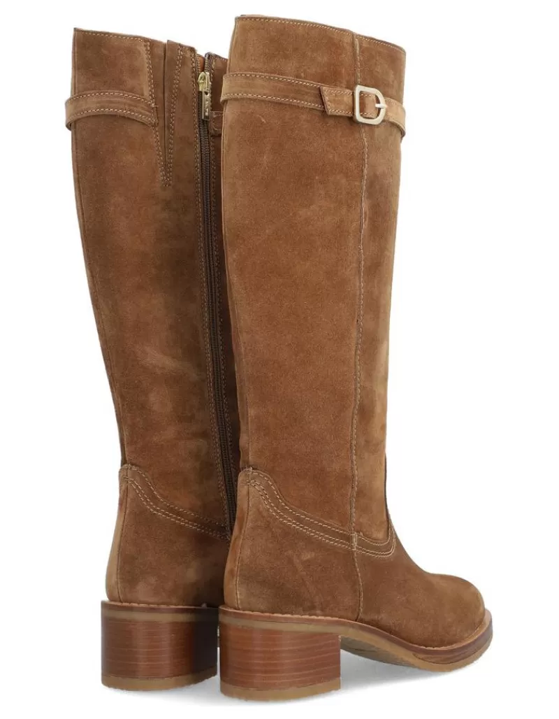 Bota Para Mujer Alpe Madame, Fabricada En Piel (Baby Silk) De Color Cuero Con Tacon De 5 Cm, Suela Antideslizante Y Puntera Redonda, Con Cierre Mediante Cremallera Y Cana Alta.
