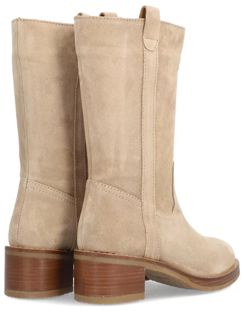Bota Para Mujer Alpe Madame, Fabricada En Piel (Baby Silk) De Color Noisette Con Tacon De 5 Cm, Suela Antideslizante Y Puntera Redonda, Sin Cierre Y Cana Media.