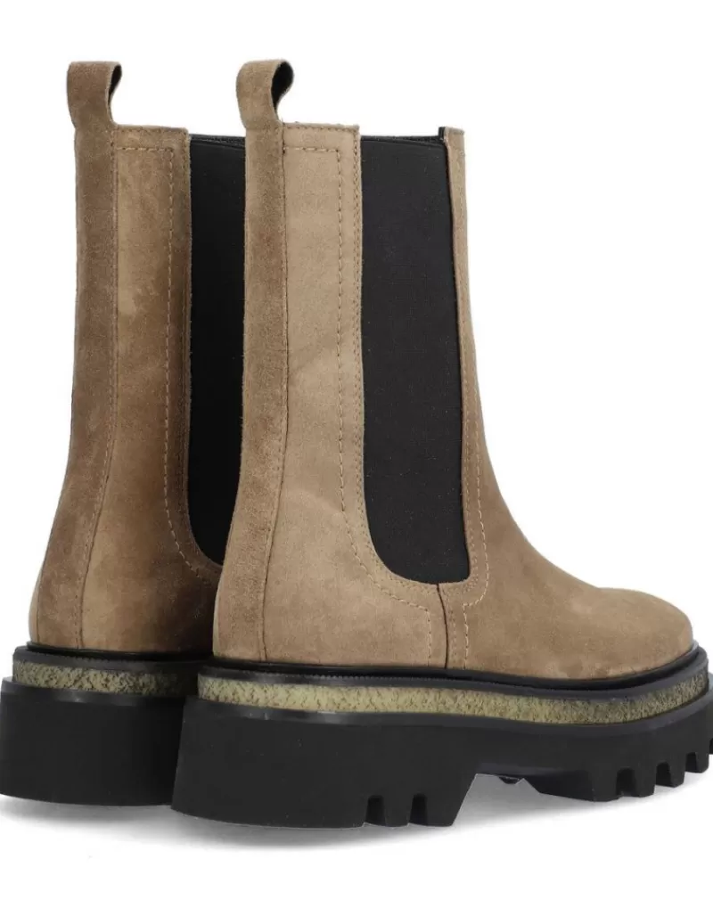 Bota Para Mujer Alpe Milano, Fabricada En Piel (Baby Silk) De Color Sander Con Plataforma De 5 Cm, Suela Antideslizante Y Puntera Redonda, Sin Cierre Y Cana Media.