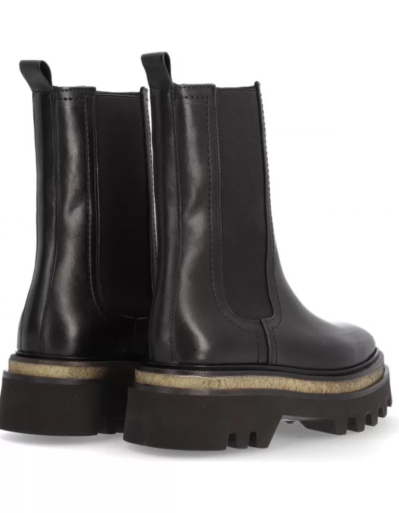 Bota Para Mujer Alpe Milano, Fabricada En Piel (Becerro) De Color Negro Con Plataforma De 5 Cm, Suela Antideslizante Y Puntera Redonda, Sin Cierre Y Cana Media.