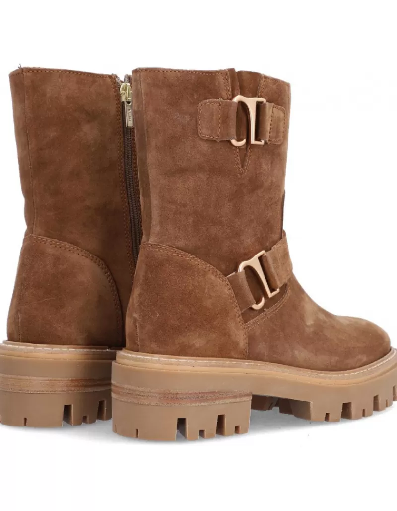 Bota Para Mujer Alpe Monza, Fabricada En Piel (Baby Silk) De Color Cuero Con Tacon De 5 Cm, Suela Antideslizante Y Puntera Redonda, Con Cierre Mediante Cremallera Y Cana Baja.