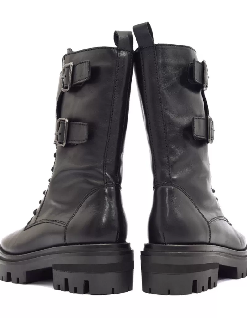 Bota Para Mujer Alpe Monza, Fabricada En Piel (Empire) De Color Negro Con Tacon De 5 Cm, Suela Antideslizante Y Puntera Redonda, Con Cierre Mediante Cremallera Y Cana Media.