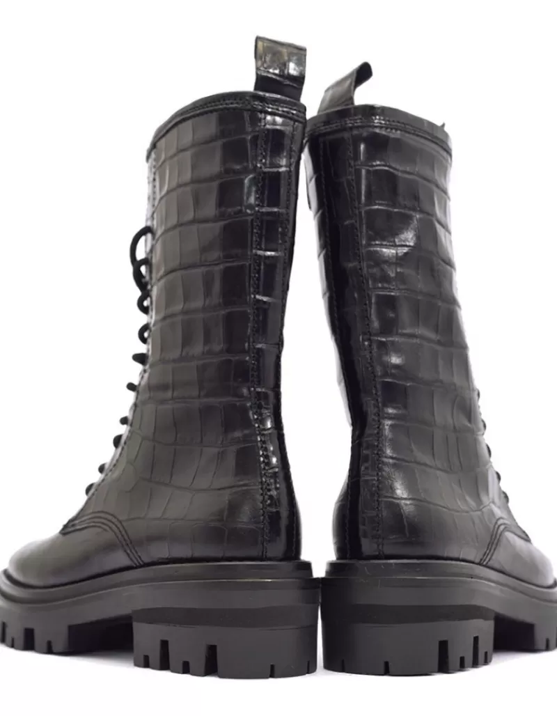 Bota Para Mujer Alpe Monza, Fabricada En Piel (Coco) De Color Negro Con Tacon De 5 Cm, Suela Antideslizante Y Puntera Redonda, Con Cierre Mediante Cremallera Y Cana Media.