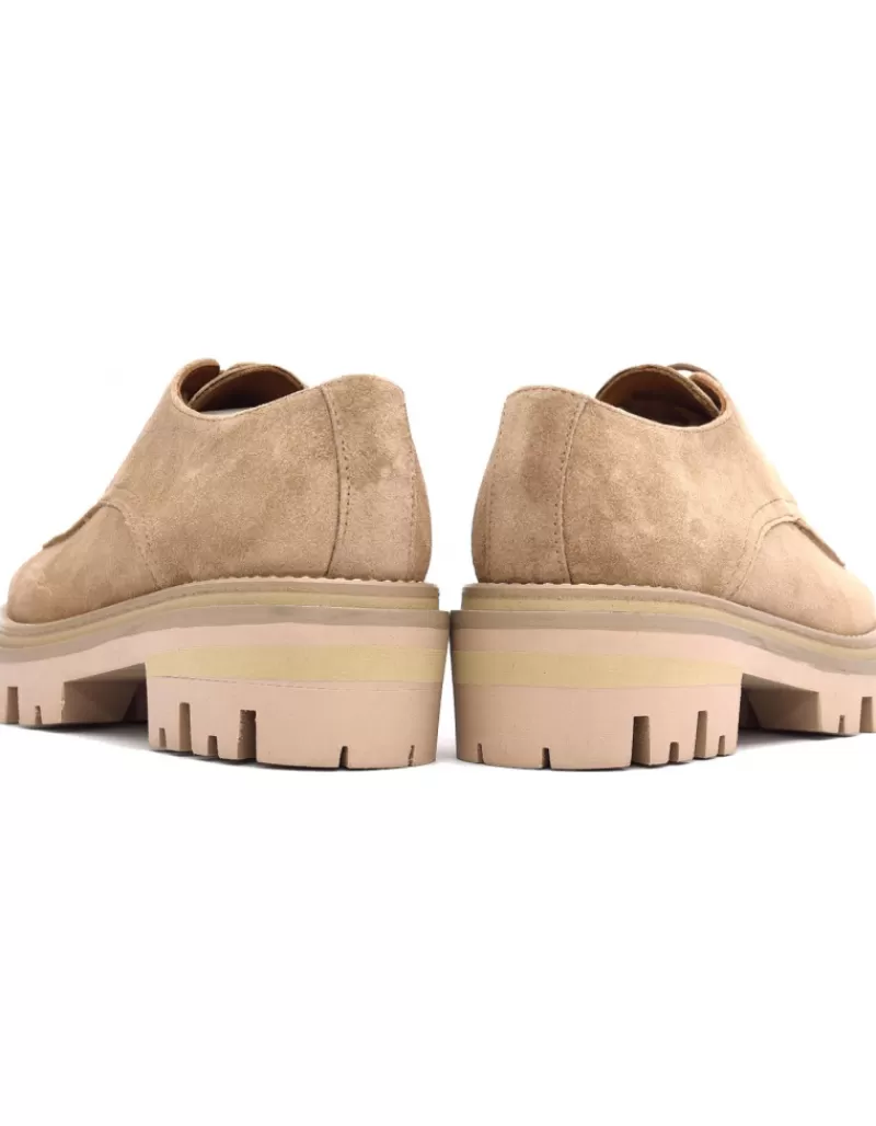 Zapato Para Mujer Alpe Monza, Fabricado En Piel (Baby Silk) De Color Canela Con Tacon De 5 Cm, Suela Antideslizante Y Puntera Redonda, Con Cierre Mediante Cordon.