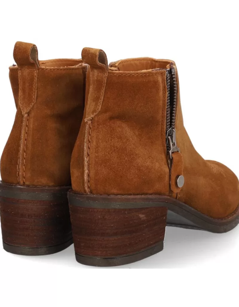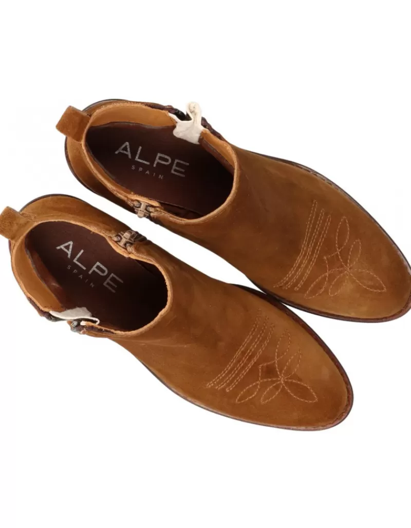 Ankle Boots Para Woman Alpe Nelly, Fabricado En Piel (Baby Silk Gliter) De Color Cuero Con Tacon De 4,5 Cm, Suela Antideslizante Y Puntera Rounded, Con Cierre Mediante Cremallera Y Cana Low.