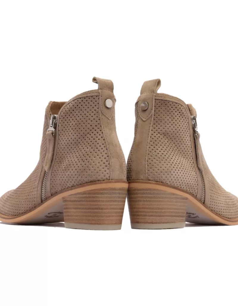 Botin Para Mujer Alpe Nelly, Fabricado En Piel (Baby Silk) De Color Dessert Con Tacon De 4,5 Cm, Suela Antideslizante Y Puntera Redonda, Con Cierre Mediante Cremallera Y Cana Baja.