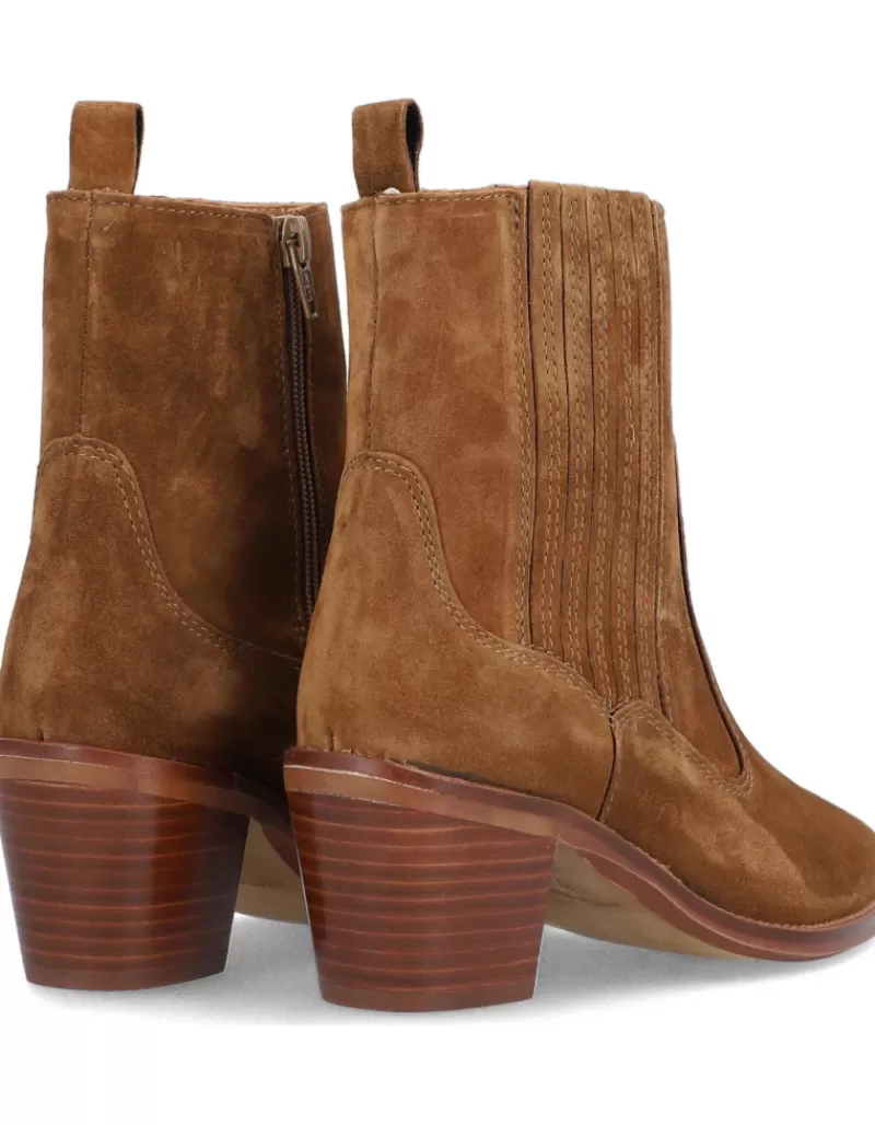 Ankle Boots Para Woman Alpe Nevada, Fabricado En Piel (Baby Silk Gliter) De Color Cuero Con Tacon De 6 Cm, Suela Antideslizante Y Puntera Afilada, Con Cierre Mediante Cremallera Y Cana Low.