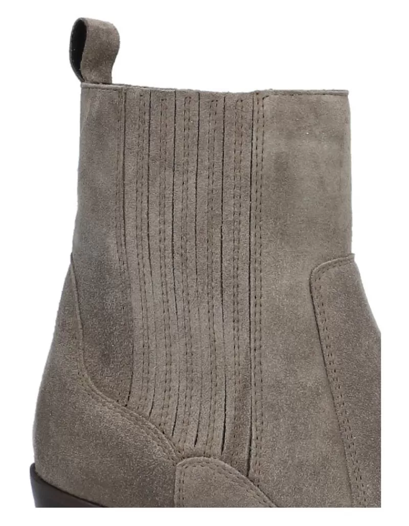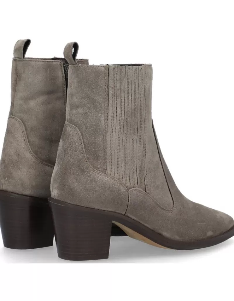 Ankle Boots Para Woman Alpe Nevada, Fabricado En Piel (Baby Silk Gliter) De Color Taiga Con Tacon De 5,5 Cm, Suela Antideslizante Y Puntera Afilada, Con Cierre Mediante Cremallera Y Cana Low.