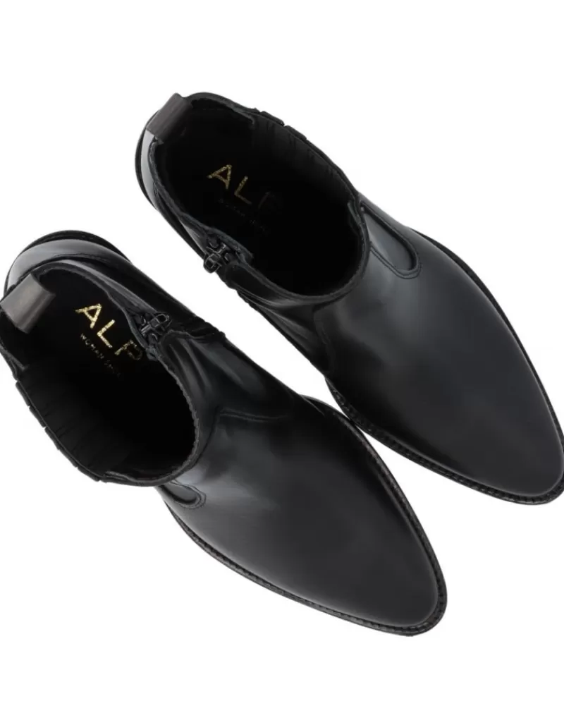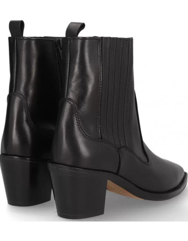 Ankle Boots Para Woman Alpe Nevada, Fabricado En Piel (Becerro) De Color Black Con Tacon De 5,5 Cm, Suela Antideslizante Y Puntera Afilada, Con Cierre Mediante Cremallera Y Cana Low.