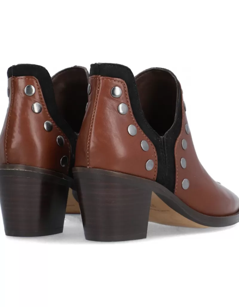 Ankle Boots Para Woman Alpe Nevada, Fabricado En Piel (Becerro) De Color Brandy Con Tacon De 6 Cm, Suela Antideslizante Y Puntera Afilada, Sin Cierre Y Cana Low.