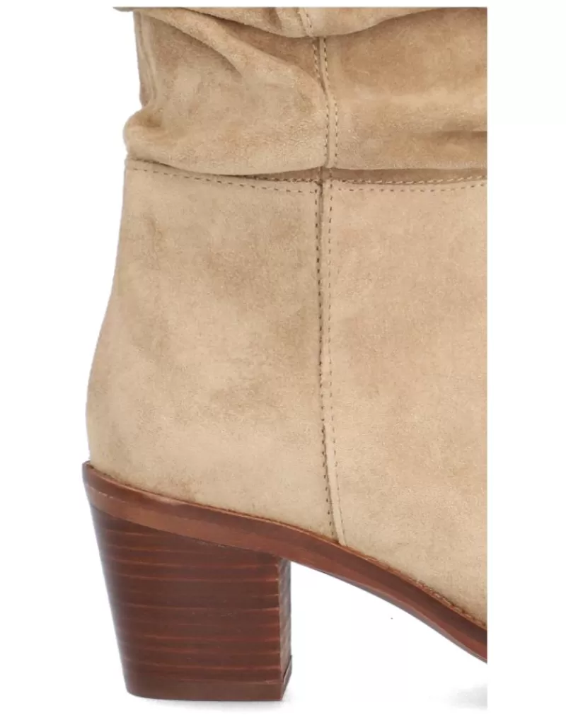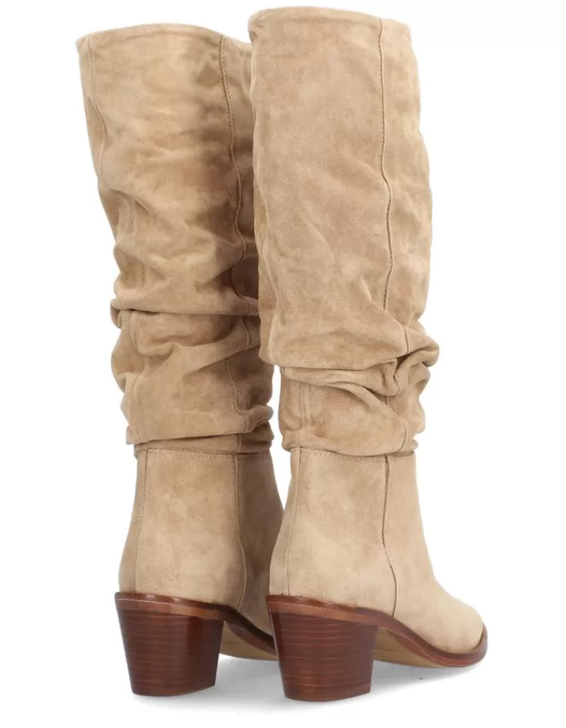 Boots Para Woman Alpe Nevada, Fabricado En Piel (Baby Silk Gliter) De Color Noisette Con Tacon De 6 Cm, Suela Antideslizante Y Puntera Afilada, Sin Cierre Long.