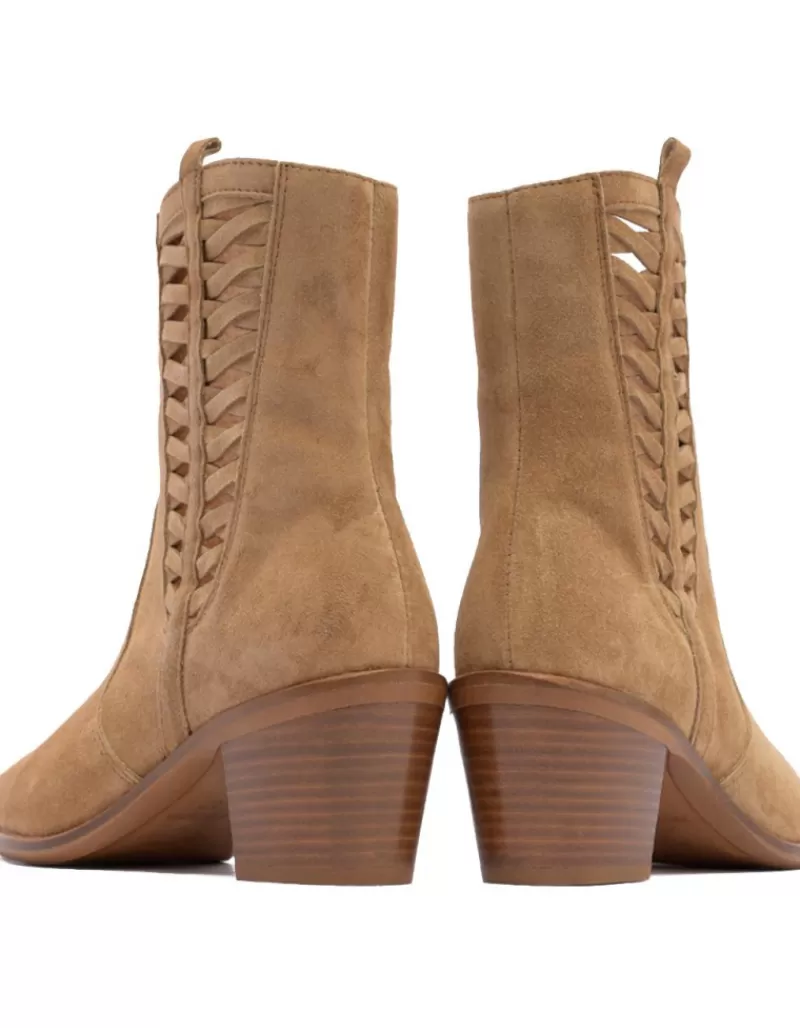 Bota Para Mujer Alpe Nevada, Fabricada En Piel (Baby Silk) De Color Alce Con Tacon De 6 Cm, Suela Antideslizante Y Punte…
