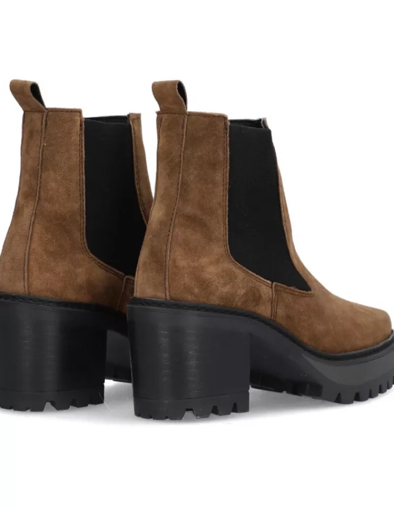 Ankle Boots Para Woman Alpe New Amelie, Fabricado En Piel (Baby Silk Gliter) De Color Sandalo Con Tacon De 7 Cm, Suela Antideslizante Y Puntera Rounded, Sin Cierre Y Cana Medium.