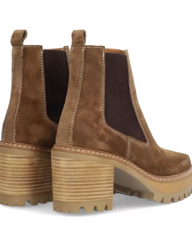 Ankle Boots Para Woman Alpe New Amelie, Fabricado En Piel (Baby Silk Gliter) De Color Sandalo Con Tacon De 7 Cm, Suela Antideslizante Y Puntera Rounded, Sin Cierre Y Cana Low.