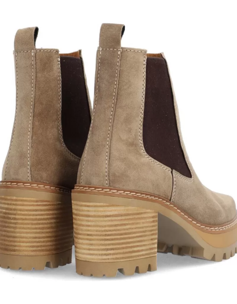 Ankle Boots Para Woman Alpe New Amelie, Fabricado En Piel (Baby Silk Gliter) De Color Sander Con Tacon De 7 Cm, Suela Antideslizante Y Puntera Rounded, Sin Cierre Y Cana Low.