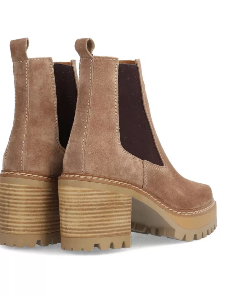 Ankle Boots Para Woman Alpe New Amelie, Fabricado En Piel (Baby Silk Gliter) De Color Bryce Con Tacon De 7 Cm, Suela Antideslizante Y Puntera Rounded, Sin Cierre Y Cana Low.