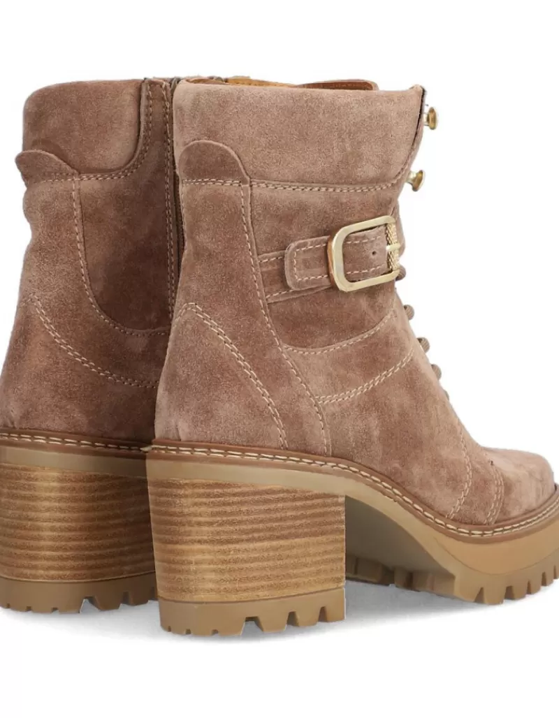 Botin Para Mujer Alpe New Amelie, Fabricado En Piel (Baby Silk) De Color Bryce Con Tacon De 7 Cm, Suela Antideslizante Y Puntera Redonda, Con Cierre Mediante Cremallera Y Cana Baja.