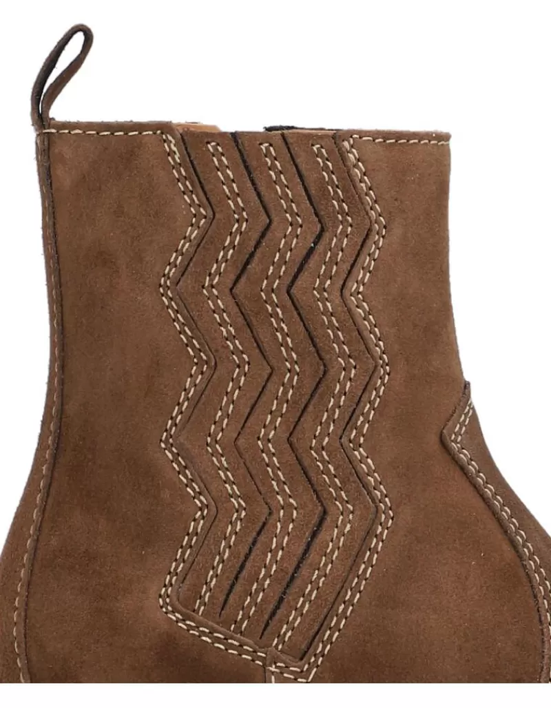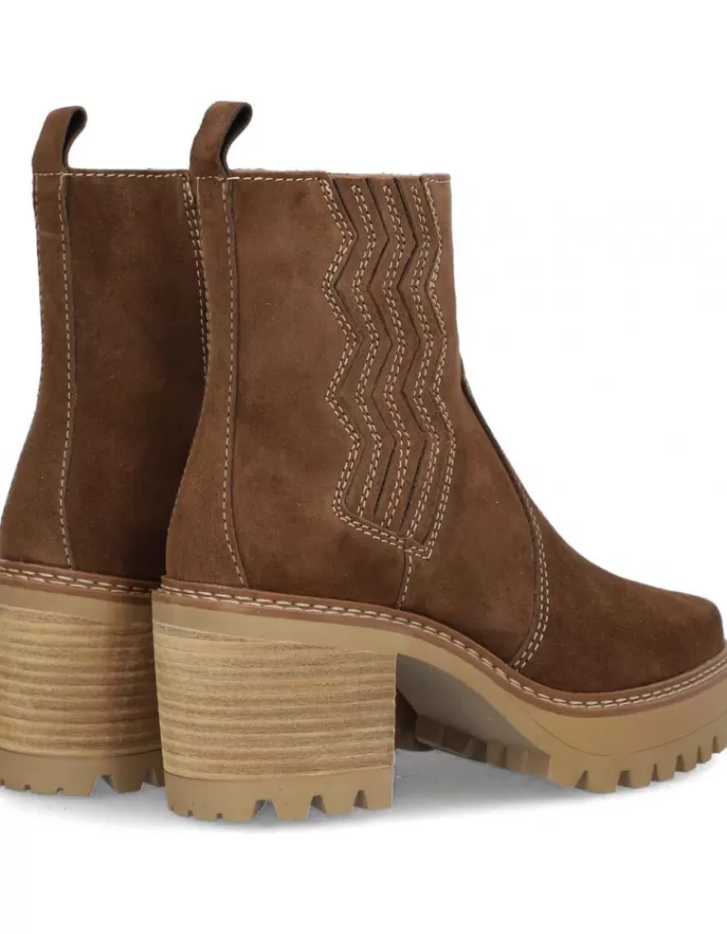 Ankle Boots Para Woman Alpe New Amelie, Fabricado En Piel (Baby Silk Gliter) De Color Dark Brown Con Tacon De 7 Cm, Suela Antideslizante Y Puntera Rounded, Con Cierre Mediante Cremallera Y Cana Low.