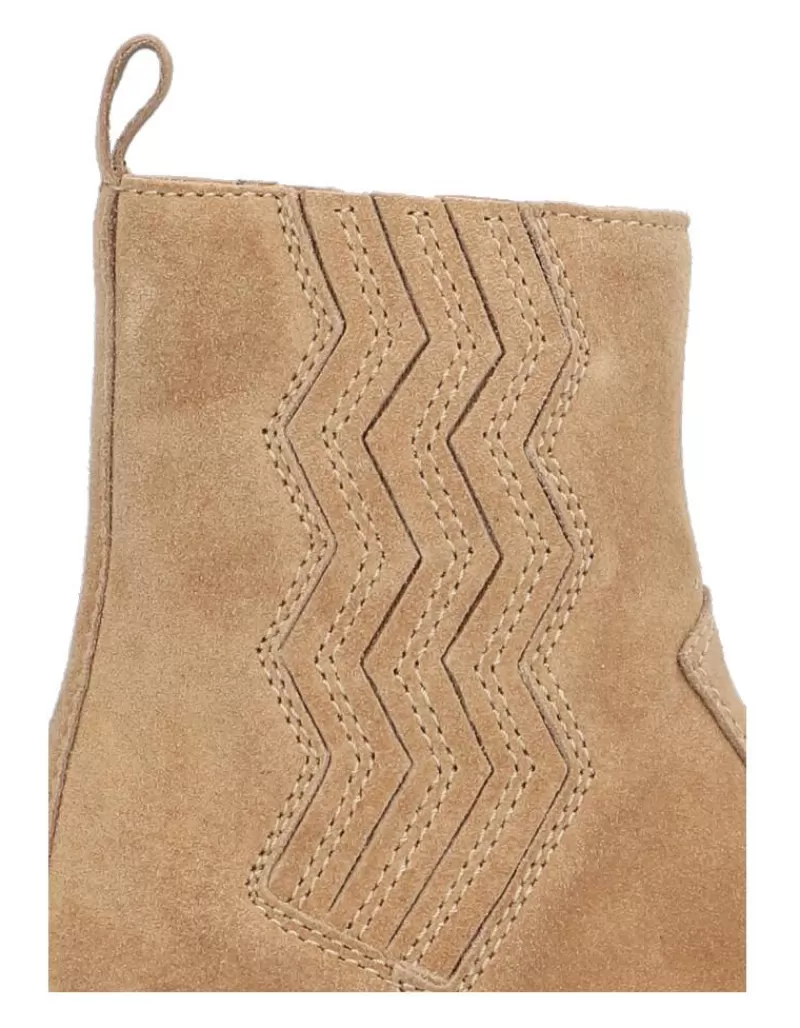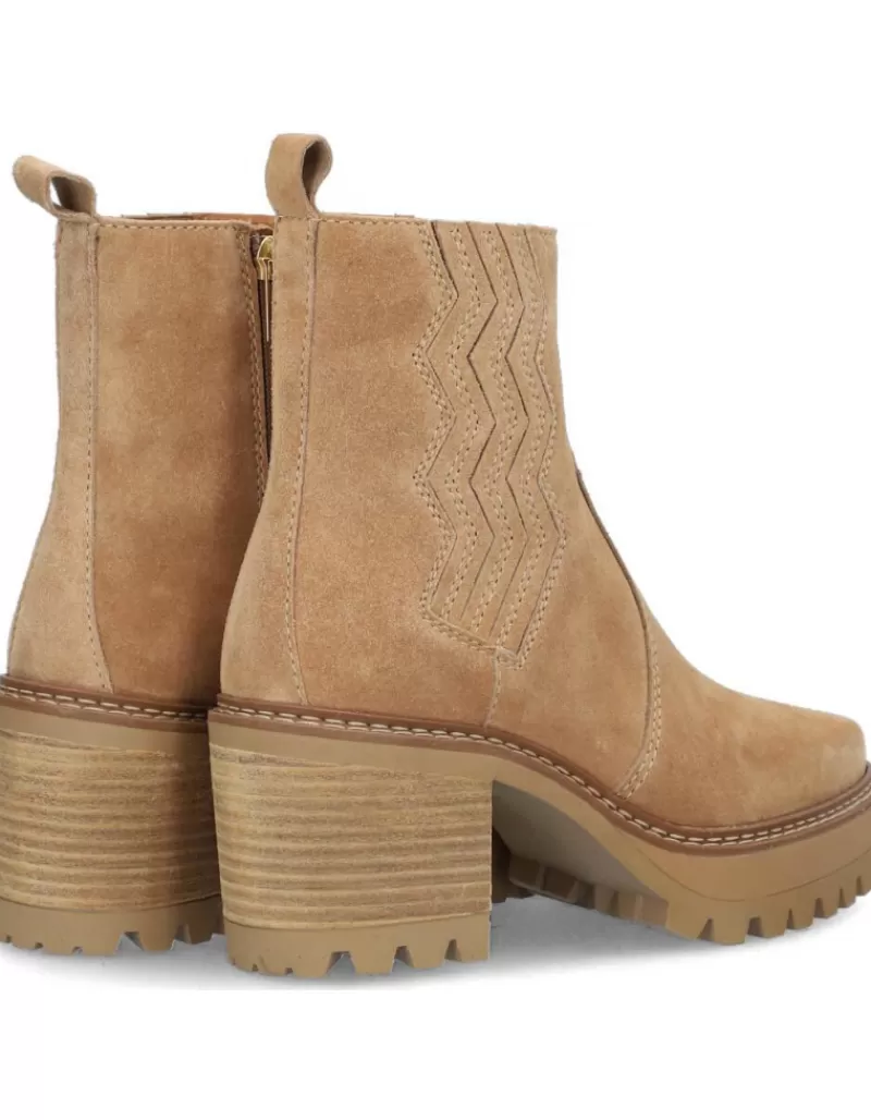 Ankle Boots Para Woman Alpe New Amelie, Fabricado En Piel (Baby Silk Gliter) De Color Camel Con Tacon De 7 Cm, Suela Antideslizante Y Puntera Rounded, Con Cierre Mediante Cremallera Y Cana Low.