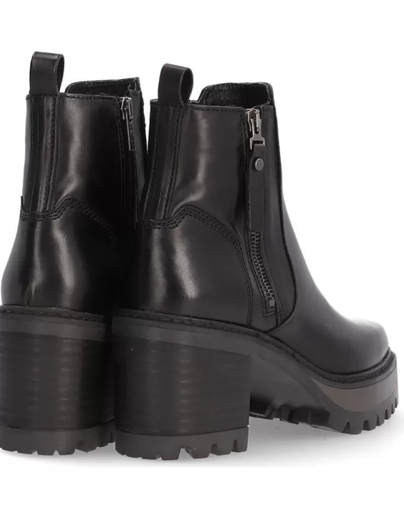 Ankle Boots Para Woman Alpe New Amelie, Fabricado En Piel (Becerro) De Color Black Con Tacon De 7 Cm, Suela Antideslizante Y Puntera Rounded, Con Cierre Mediante Cremallera Y Cana Low.