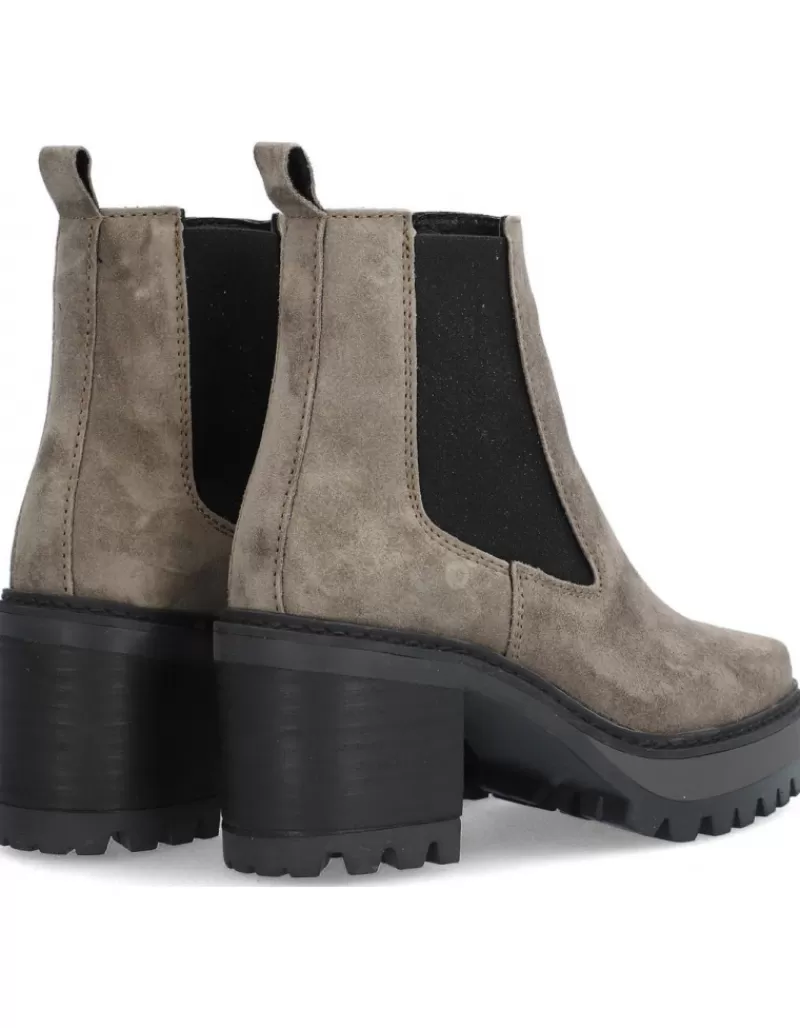 Ankle Boots Para Woman Alpe New Amelie, Fabricado En Piel (Baby Silk Gliter) De Color Taiga Con Tacon De 7 Cm, Suela Antideslizante Y Puntera Rounded, Sin Cierre Y Cana Low.