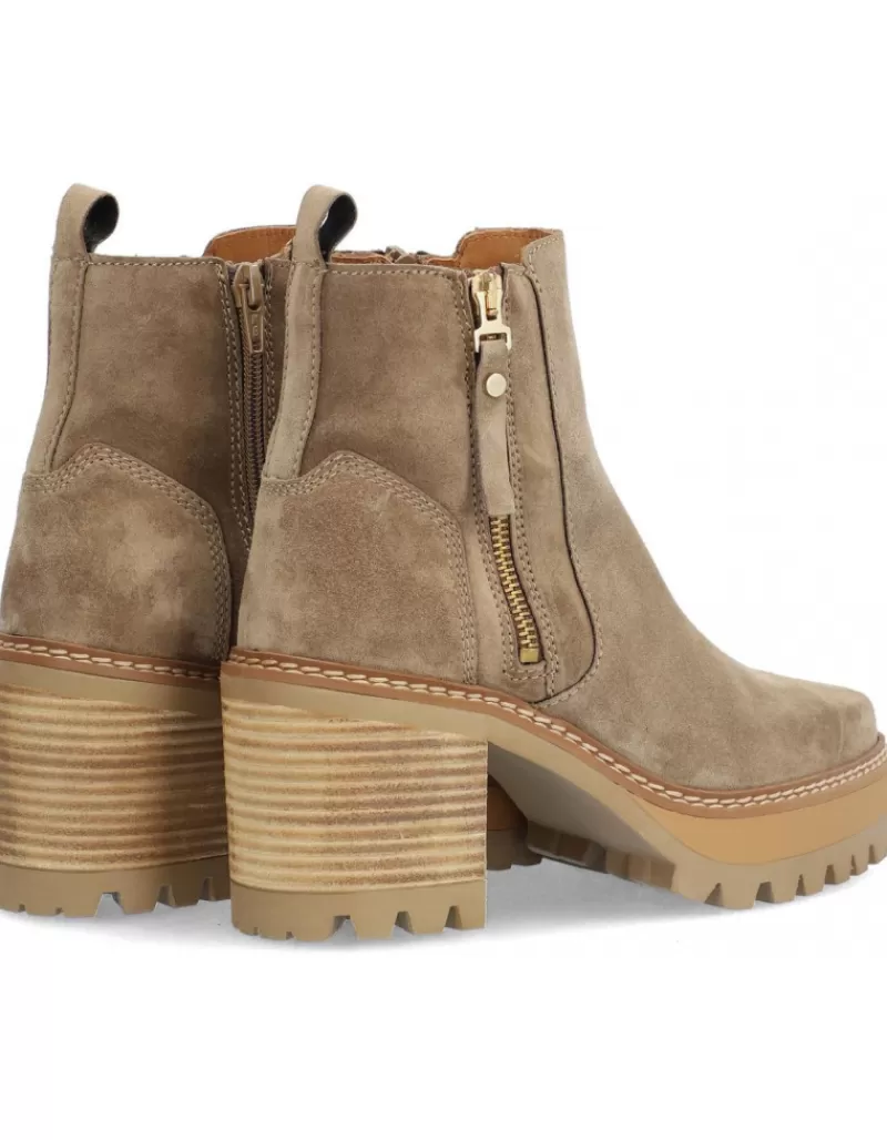 Ankle Boots Para Woman Alpe New Amelie, Fabricado En Piel (Baby Silk Gliter) De Color Sander Con Tacon De 6 Cm, Suela Antideslizante Y Puntera Rounded, Con Cierre Mediante Cremallera Y Cana Low.