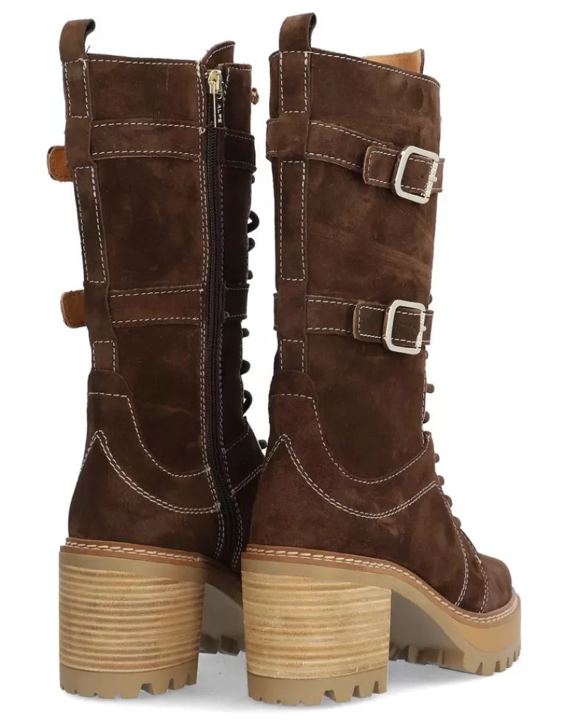 Bota Para Mujer Alpe New Amelie, Fabricada En Piel (Baby Silk) De Color Arabica Con Tacon De 7 Cm, Suela Antideslizante Y Puntera Redonda, Con Cierre Mediante Cremallera Y Cana Alta.