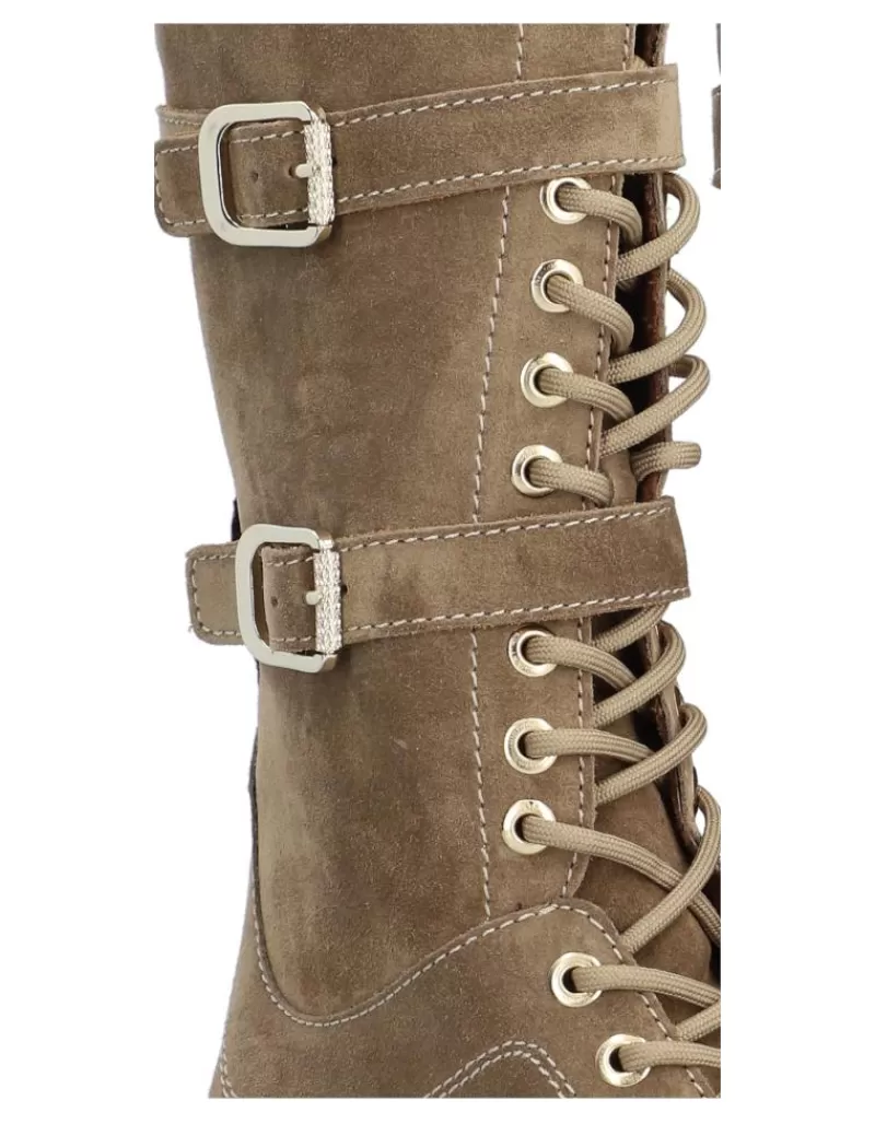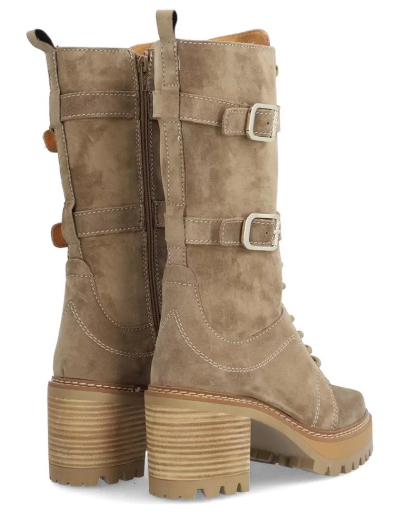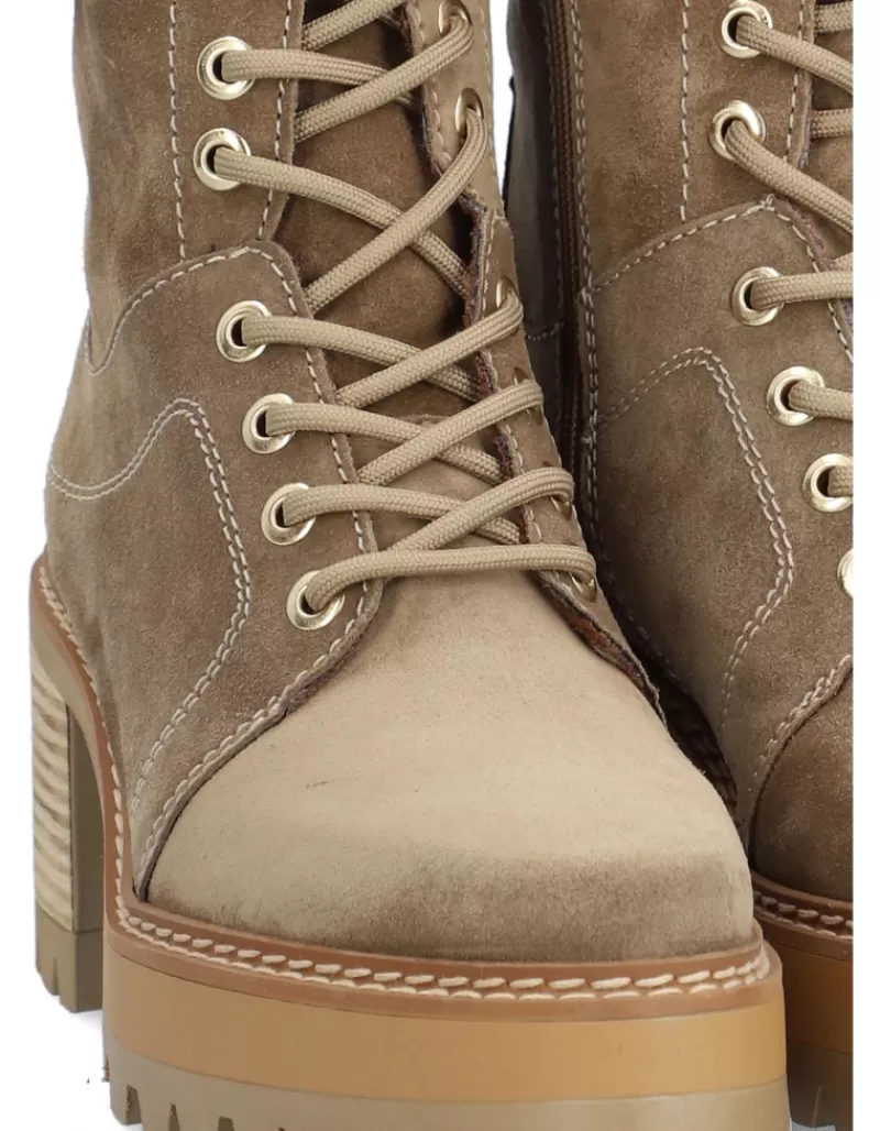 Boots Para Woman Alpe New Amelie, Fabricado En Piel (Baby Silk Gliter) De Color Sander Con Tacon De 7 Cm, Suela Antideslizante Y Puntera Rounded, Con Cierre Mediante Cremallera Long.