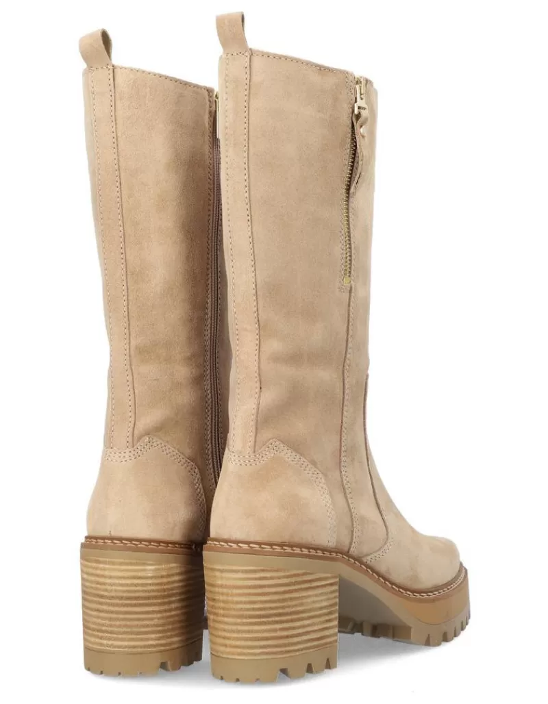 Boots Para Woman Alpe New Amelie, Fabricado En Piel (Baby Silk Gliter) De Color Noisette Con Tacon De 7 Cm, Suela Antideslizante Y Puntera Rounded, Con Cierre Mediante Cremallera Y Cana Medium.