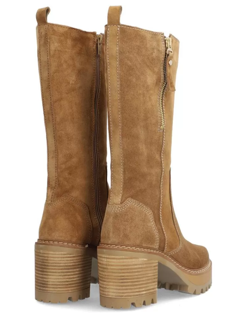 Boots Para Woman Alpe New Amelie, Fabricado En Piel (Baby Silk Gliter) De Color Birra Con Tacon De 7 Cm, Suela Antideslizante Y Puntera Rounded, Con Cierre Mediante Cremallera Y Cana Medium.