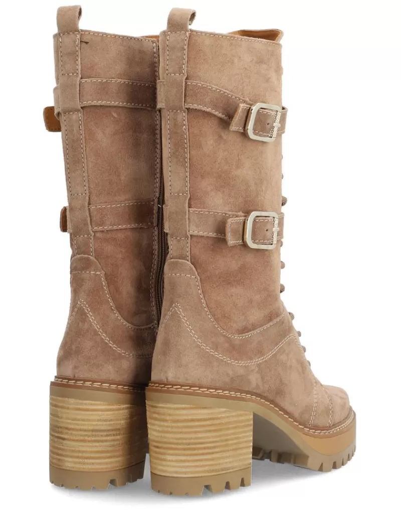 Bota Para Mujer Alpe New Amelie, Fabricada En Piel (Baby Silk) De Color Bryce Con Tacon De 7 Cm, Suela Antideslizante Y Puntera Redonda, Con Cierre Mediante Cremallera Y Cana Alta.