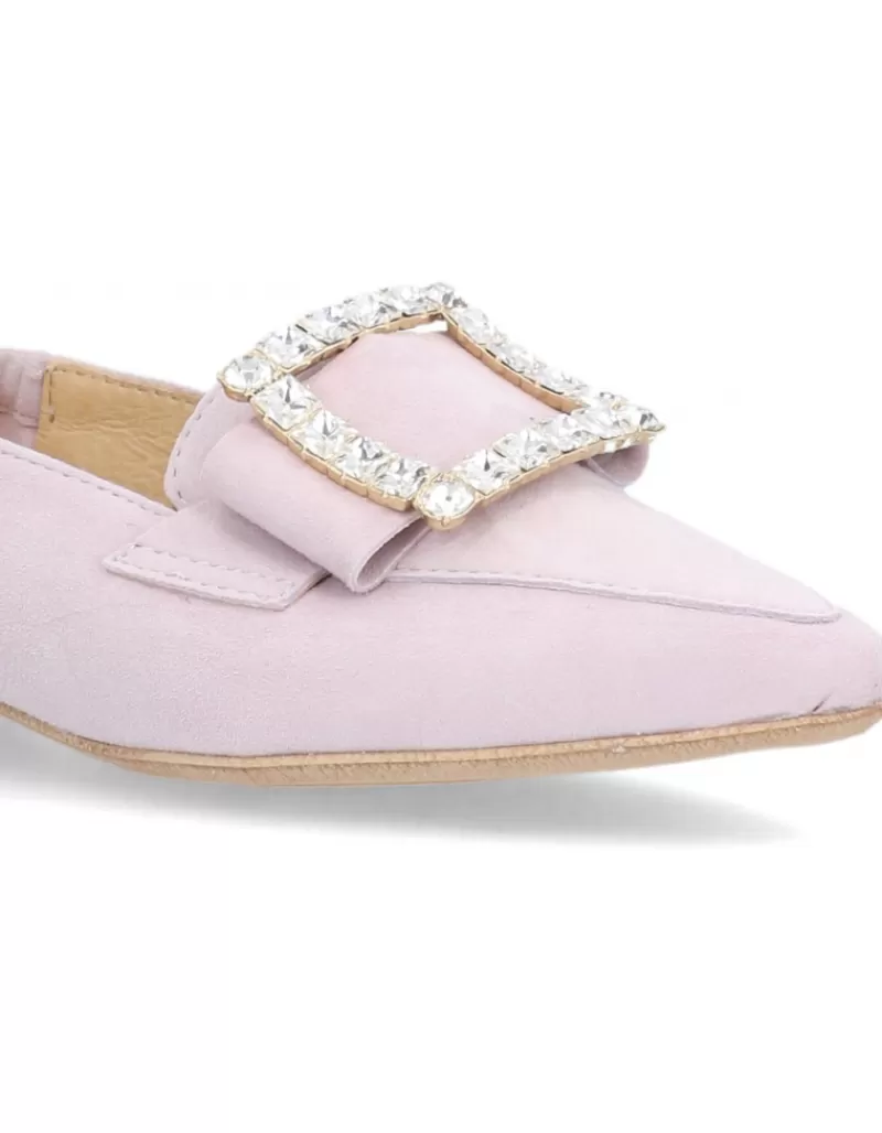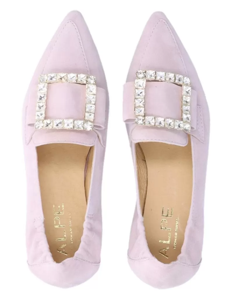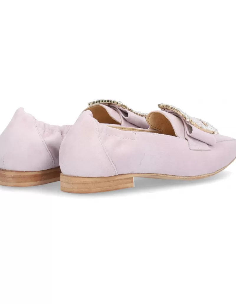 Moccasins Para Woman Alpe Niza, Fabricado En Piel (Ante) De Color Malva Sin Tacon, Suela Antideslizante Y Puntera Afilada, Sin Cierre.