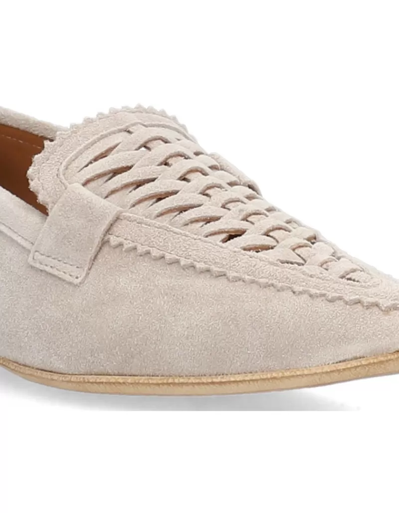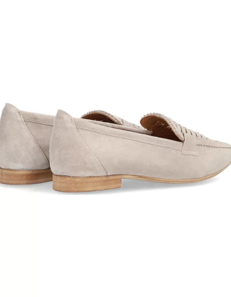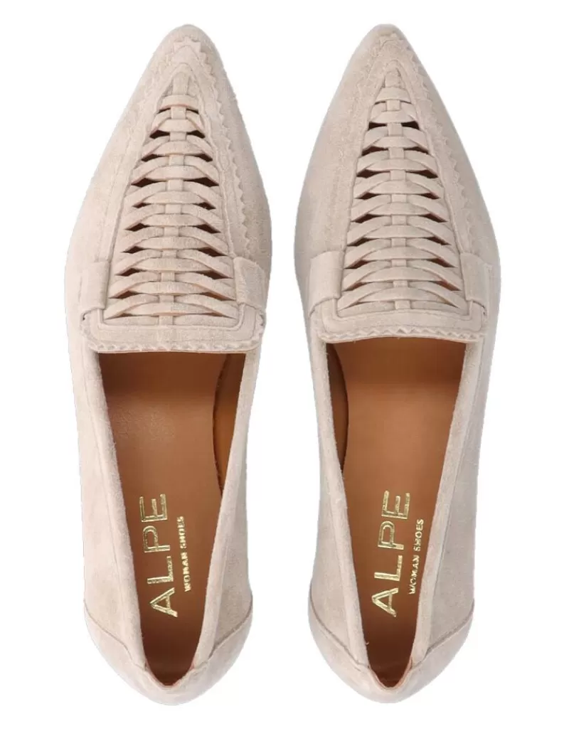 Moccasins Para Woman Alpe Niza, Fabricado En Piel (Baby Silk Gliter) De Color Tortola Con Tacon De 1 Cm, Suela Antideslizante Y Puntera Afilada, Sin Cierre.