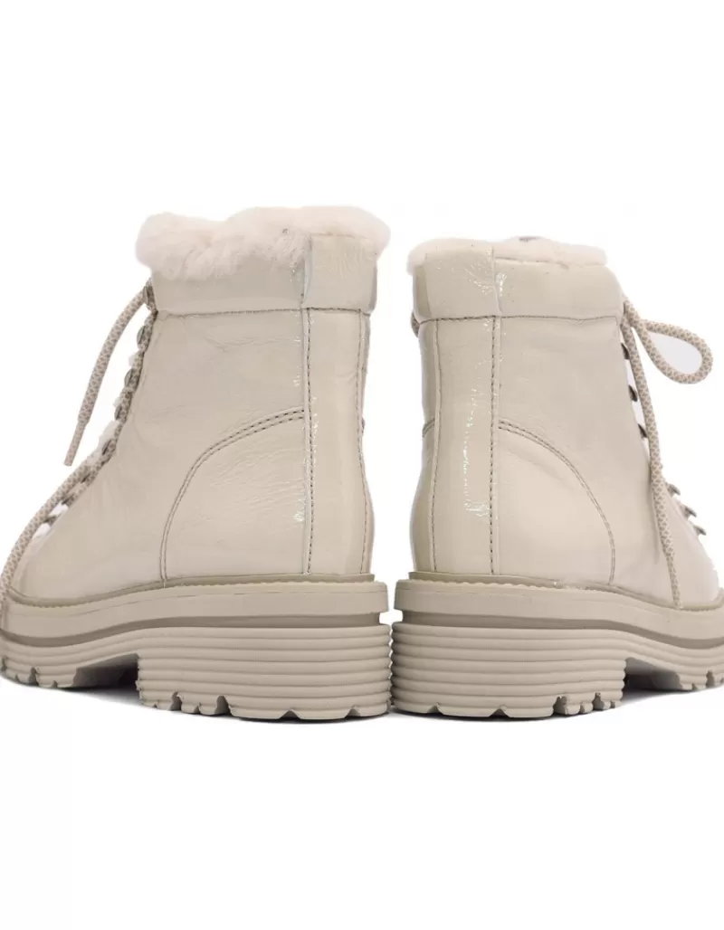 Botin Para Mujer Alpe Oslo, Fabricado En Piel (Urano) De Color Artico Con Tacon De 4,5 Cm, Suela Antideslizante Y Puntera Redonda, Con Cierre Mediante Cordon Y Cana Baja.