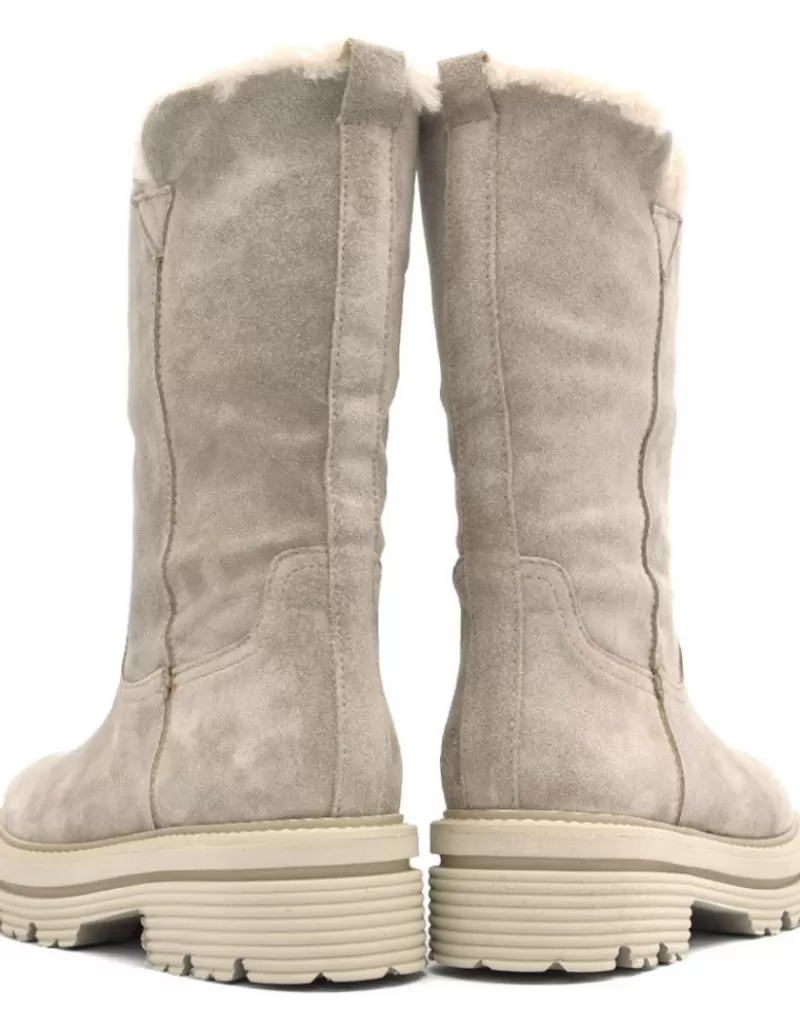 Bota Para Mujer Alpe Oslo, Fabricada En Piel (Baby Silk) De Color Polar Con Tacon De 4,5 Cm, Suela Antideslizante Y Puntera Redonda, Sin Cierre Y Cana Alta.